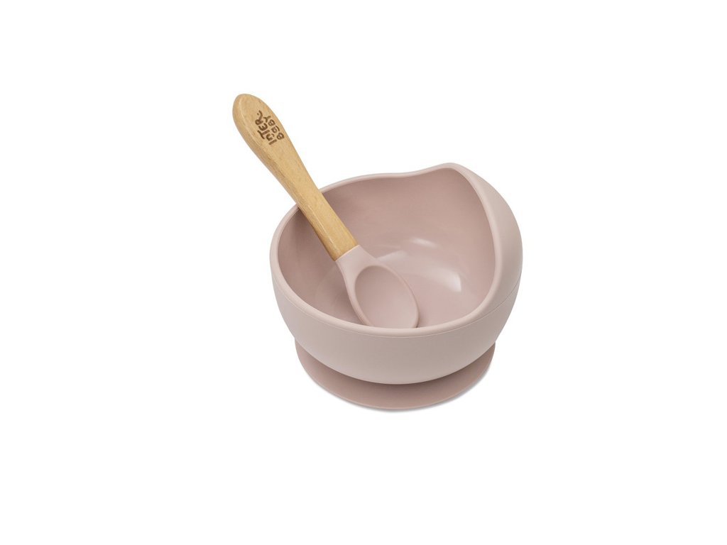 INTERBABY | MISKA silikonová + LYŽIČKA silikonová +4 m - ružová