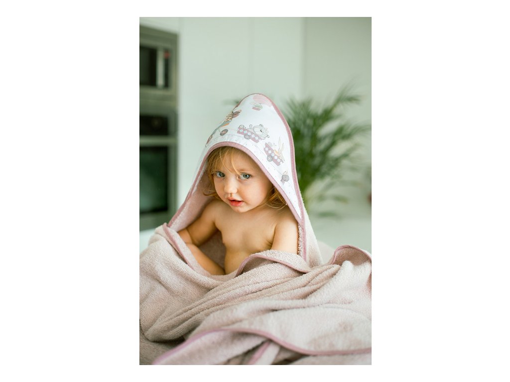 Deti sa po kúpaní vo vaničke alebo bazéne môžu zabaliť do hrejivé osušky a jej komfortná veľkosť im zaistí pocit bezpečia a pohodlia. Čistá bavlna dokonale saje a prináša pocit tepla a sucha. Kapucňa s veselým obrázkom chráni detská ušká a hlavičku pred nachladnutím a dosuší mokré vlásky, navyše pobavia motívy veselých detských kamarátov.