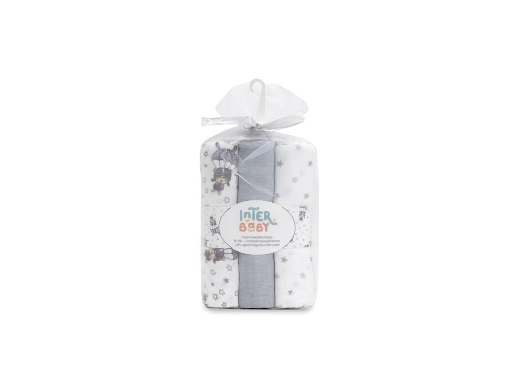 INTERBABY | PLIENKA padák 3 kusy 80x80 cm- bielo/šedá