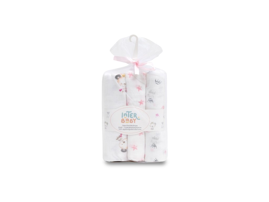INTERBABY | Plienka ZVIERATKA 3 kusy 80x80 cm- BIELO/RŮŽOVÁ