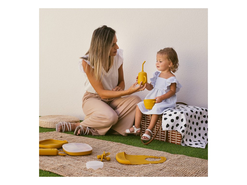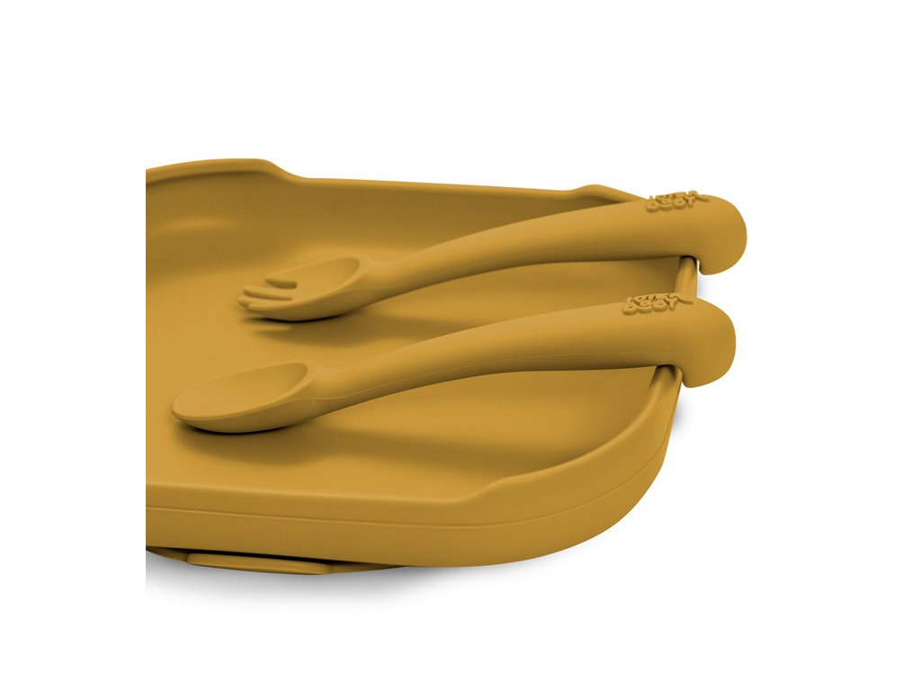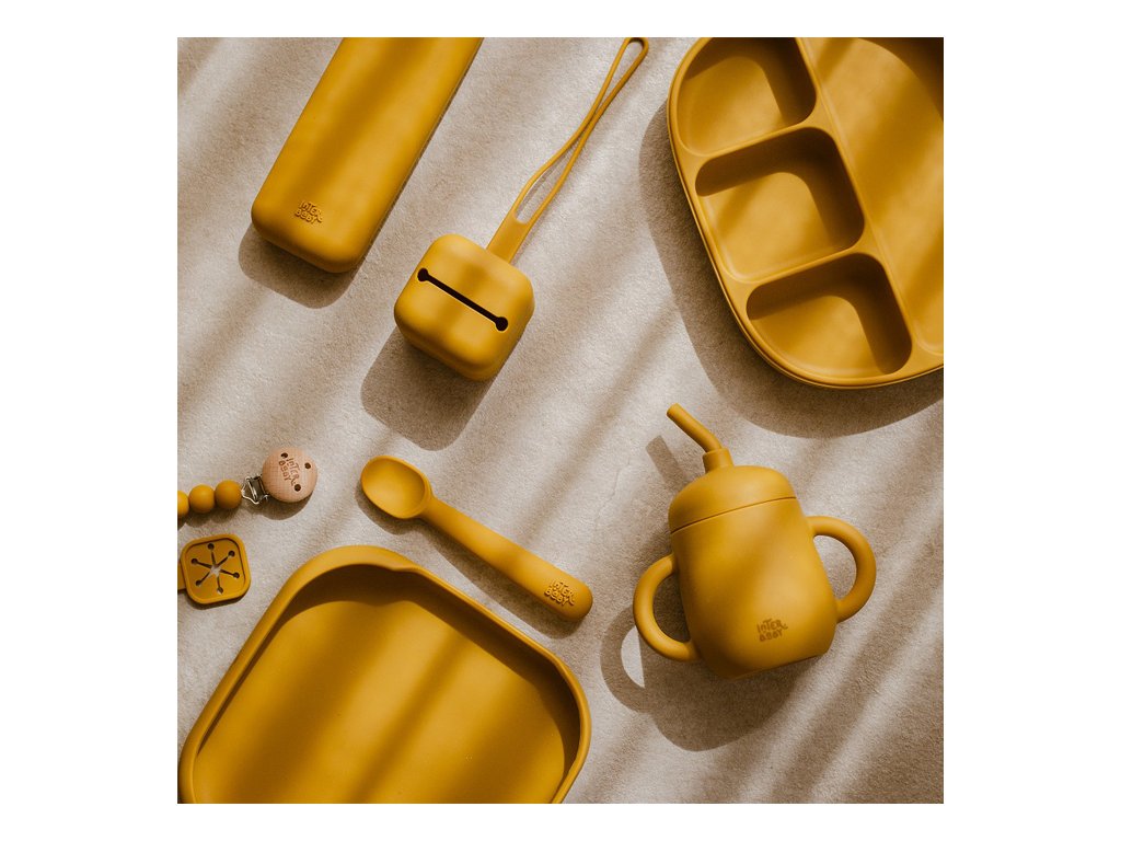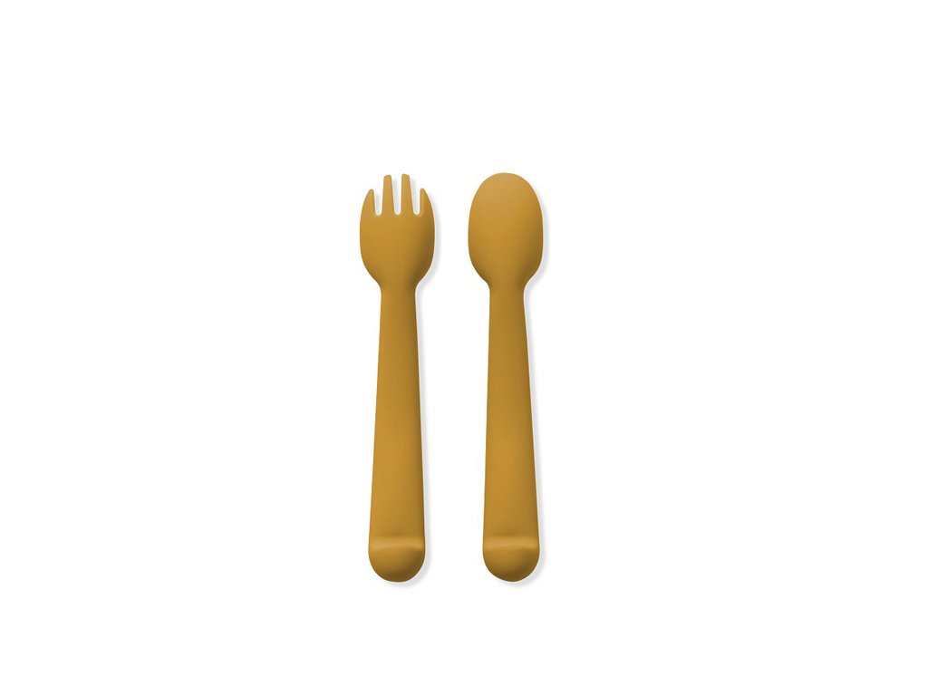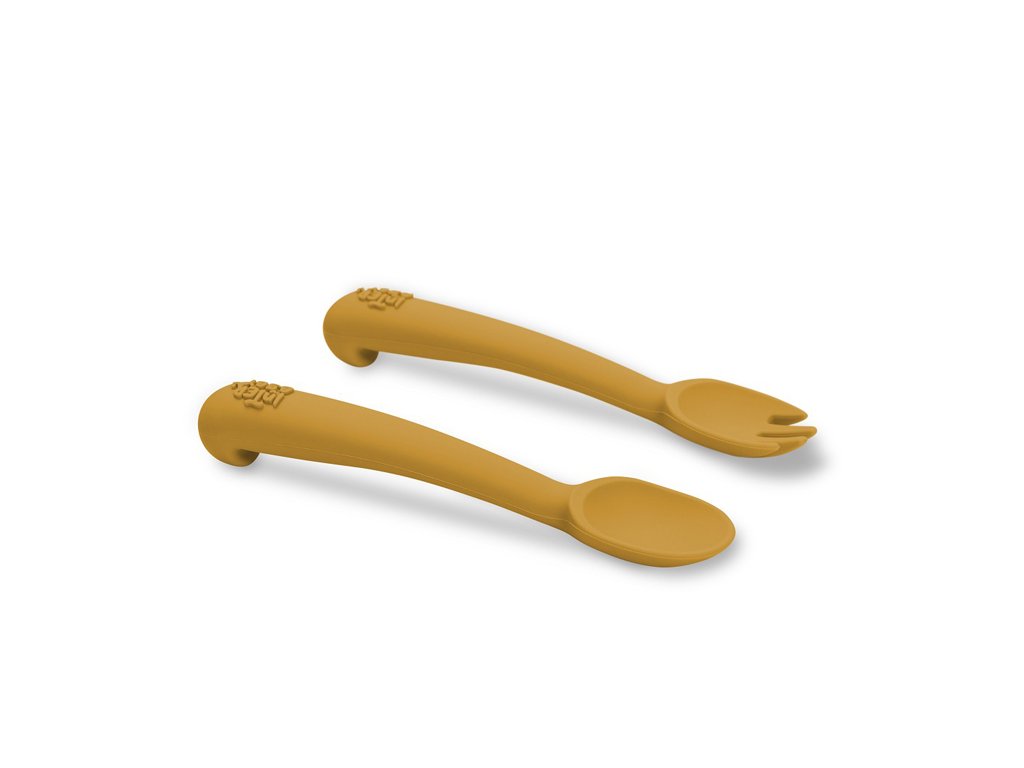 INTERBABY | SET silikónová LYŽIČKA + VIDLIČKA - okrový