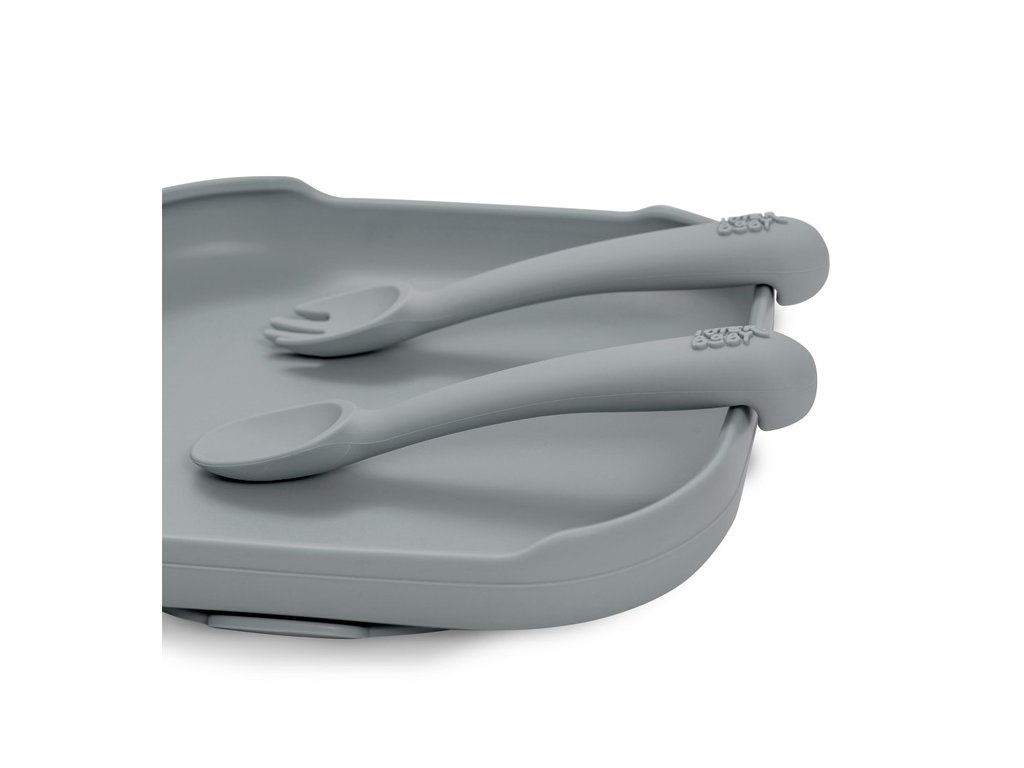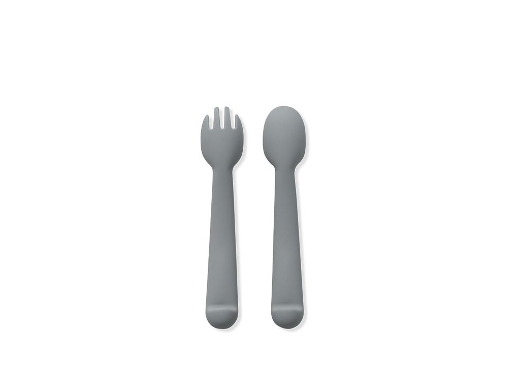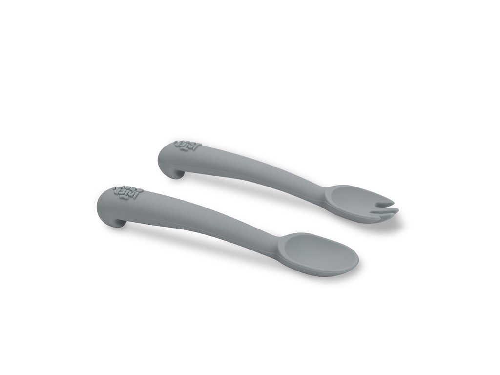 INTERBABY | SET silikónová LYŽIČKA + VIDLIČKA - sivý