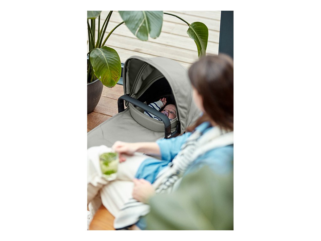 Jakmile se vaše dítě ve věku kolem šesti měsíců dokáže posadit, vyměníte korbičku za sedátko, které je součástí balení.