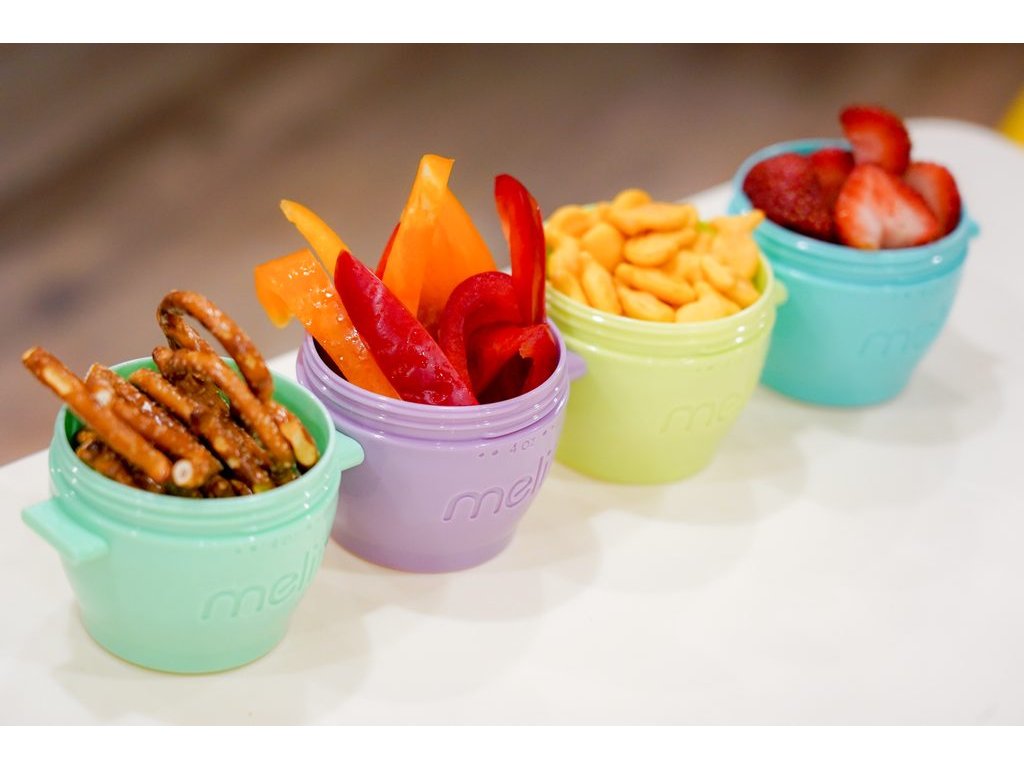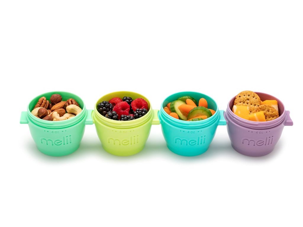 Tyto kelímky jsou vhodné do mikrovlnky a jídlo můžete podávat dítěti rovnou z kelímku. A nemusí to být pouze příkrmy. Kelímky lze k sobě horizontálně spojit a naplnit rozličnými potravinami a využít jako "vláček" na svačinku: naplňte kelímky hroznovým vínem, piškoty, gumovými medvídky, lesním ovocem, křupkami a lákavá svačina na doma nebo kdekoliv na cestách je na světě. Pro lepší přenos kelímků na cestách je můžete rozložit a skladovat ve vertikální poloze.