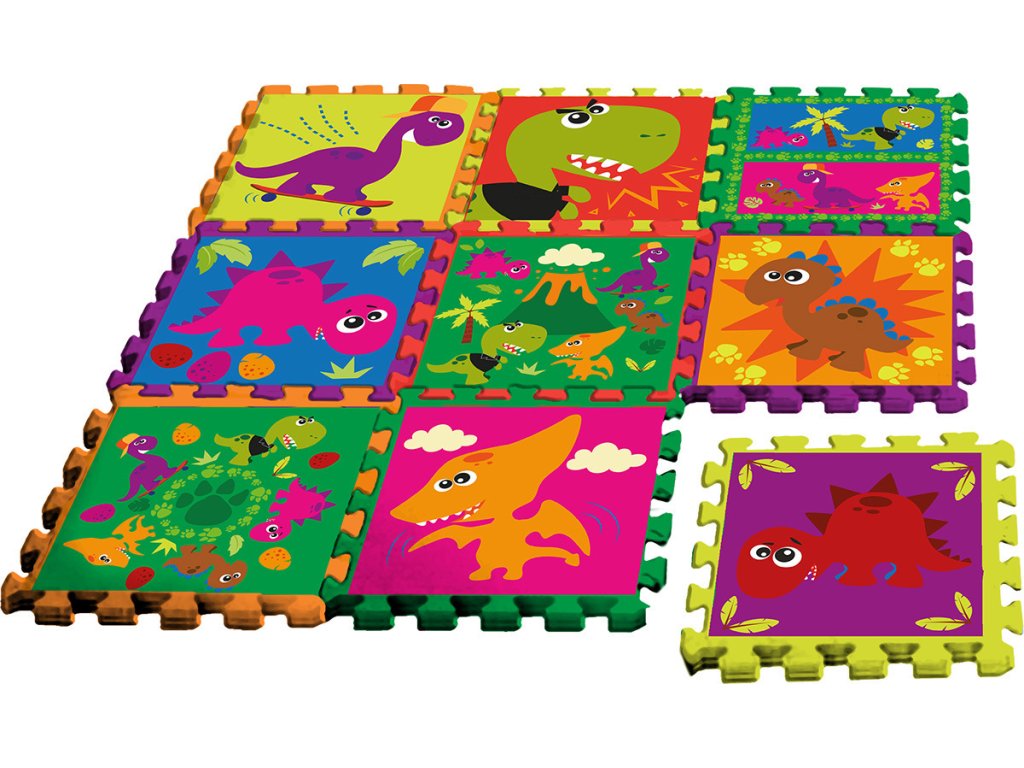 Kids Euroswan Penová podložka, puzzle 9 ks + taška, Crazy Dino