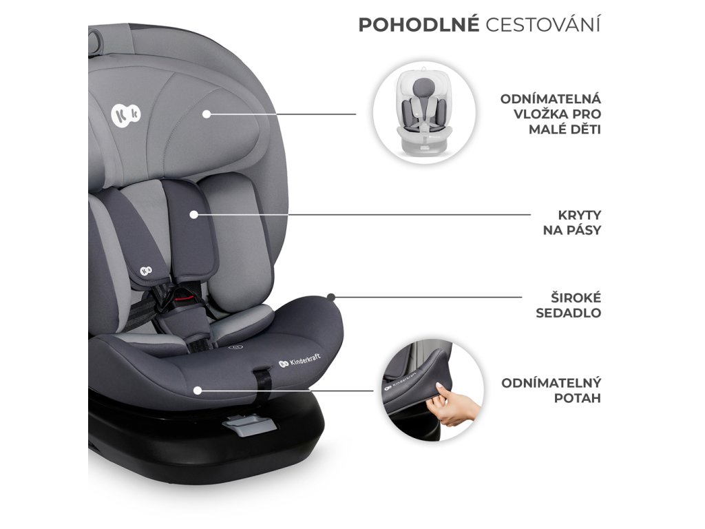 KINDERKRAFT Autosedačka I-Grow i-Size 40-150 cm Grey
