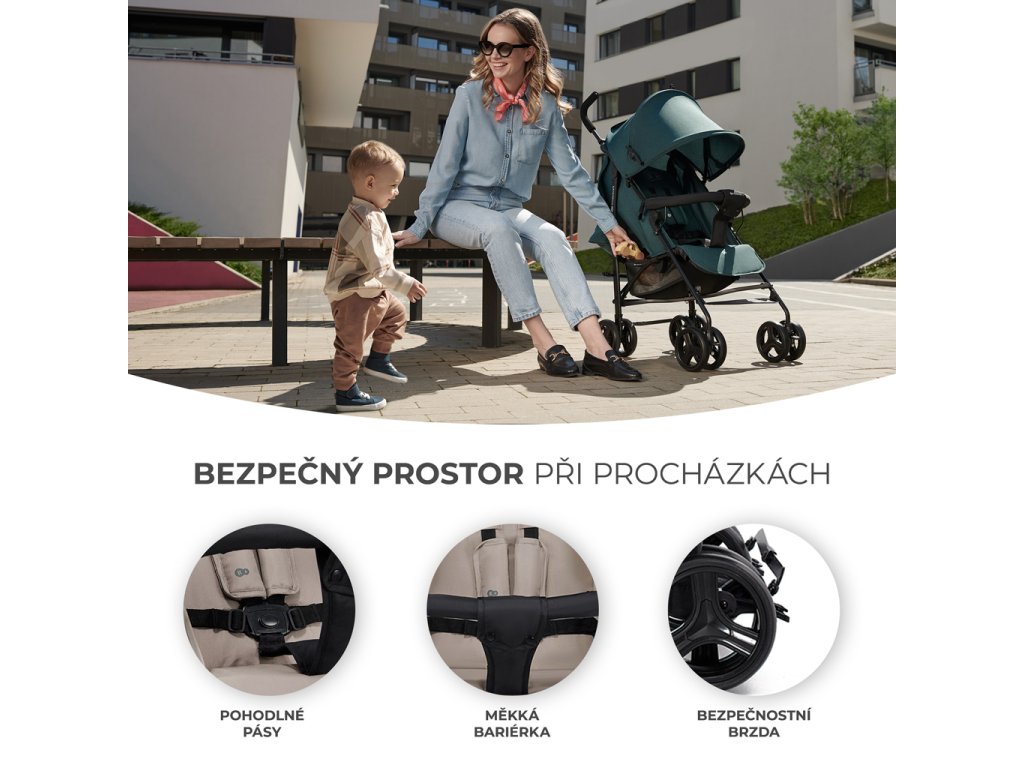 Pod sedačkou sa nachádza priestranný košík s nosnosťou až 2 kg. Zmestia sa do neho drobné nákupy, ako aj doplnky, napríklad vlhčené obrúsky, plienky alebo hračky.