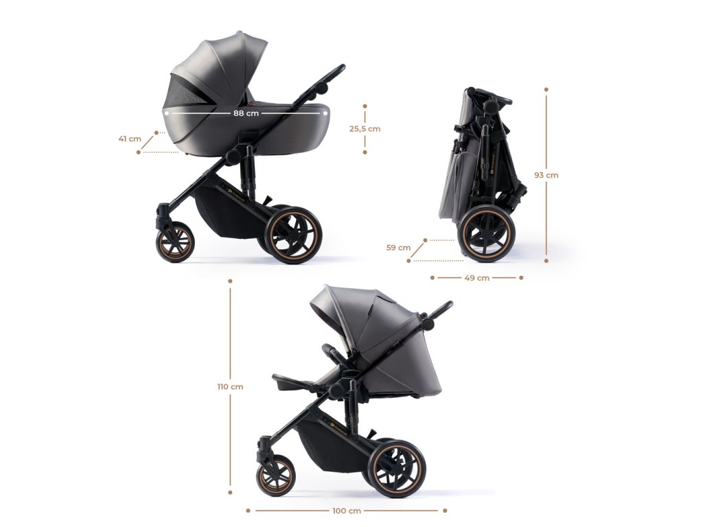 - Zložený kočík: 87 x 59 x 49 cm