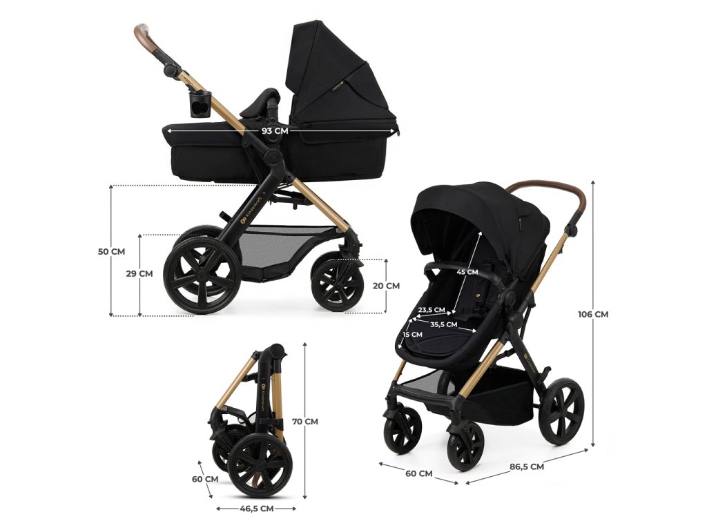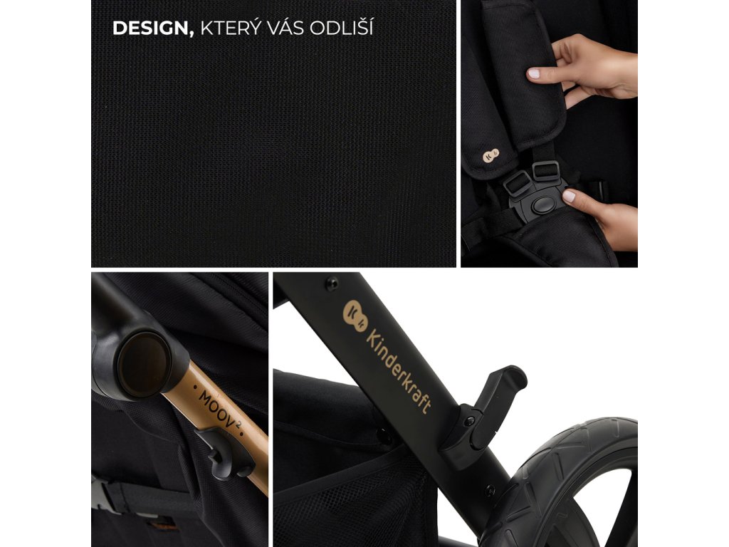 KINDERKRAFT Kočík kombinovaný Moov 2 3v1 Pure Black - penové kolesá