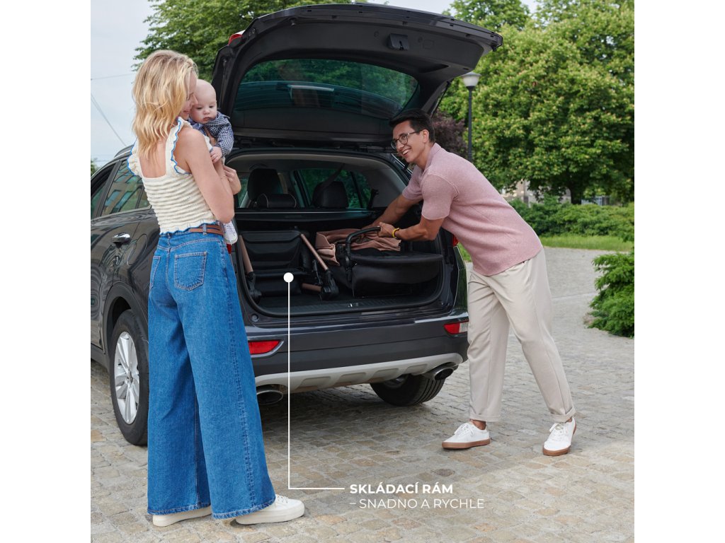 Kočík je vybavený veľkými odpruženými kolesami, ktoré sú ideálne na prechádzky. Sú nafukovacie, preto sa ideálne hodia ako na mestské prechádzky, tak aj na výlety mimo mesta. Okrem toho sa kočík dodáva s praktickým príslušenstvom, ktoré vám spríjemní každú prechádzku. Sada obsahuje univerzálne adaptéry a detskú autosedačku MINK PRO i-Size – vďaka nim môžete vytvoriť praktický cestovný systém (TRAVEL SYSTEM), čiže pripevníte autosedačku k rámu kočíka, keď vaše dieťa v aute zaspí. Spolu s MOOV 2 AIR bude rodičovstvo ešte jednoduchšie!