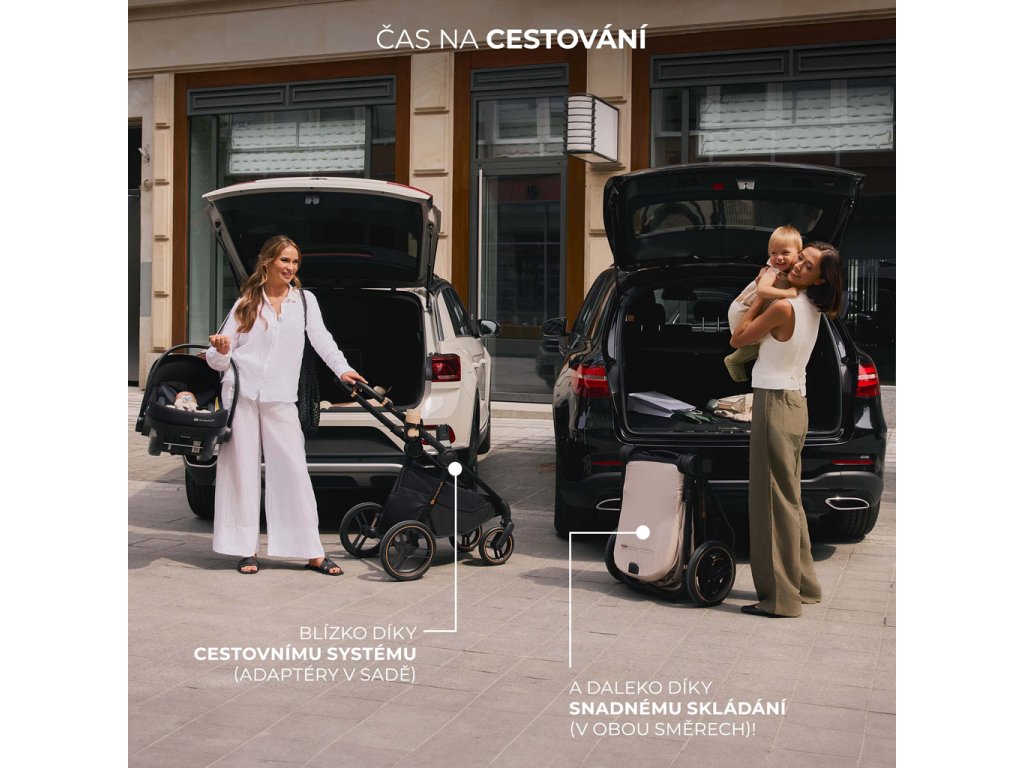 - Sada praktického príslušenstva: univerzálne adaptéry na autosedačku, nánožník pre vaničku a športovú časť, matrac do vaničky, držiak na pohár, pláštenka, sieťka proti hmyzu a nová prebaľovacia taška.