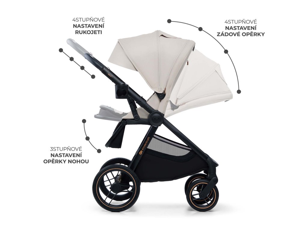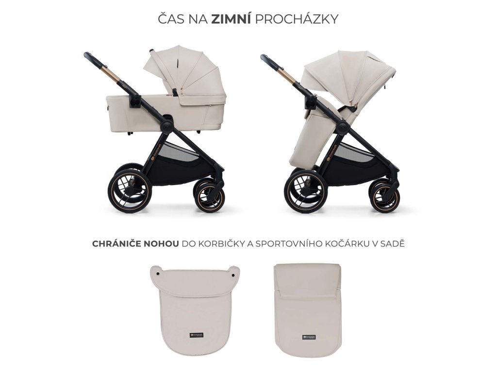 KINDERKRAFT Kočík kombinovaný Nea 2 2v1 Beige + Fusak 3v1 Jibot Horizontal Ink Black