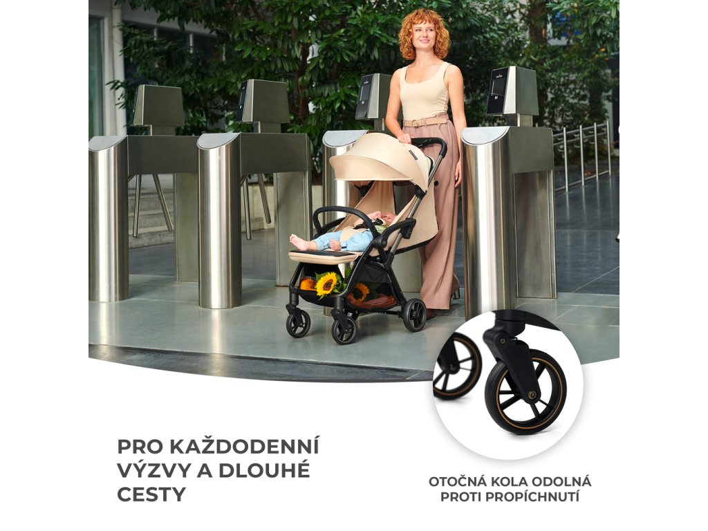 APINO je ľahký, úzky a mimoriadne ľahko ovládateľný športový kočík. Je ideálny ako kočík na každý deň a aj na výlety. Kočík je ľahko ovládateľný a jeho neprepichnuteľné kolesá vás ochránia pred nepríjemnými prekvapeniami na ceste. Nezľakne sa mestskej dopravy, malých výťahov ani schodov. Kočík zložíte do kompaktných rozmerov a vezmete do ruky (váži necelých 7,5 kg) alebo ho pribalíte k batožine do auta.