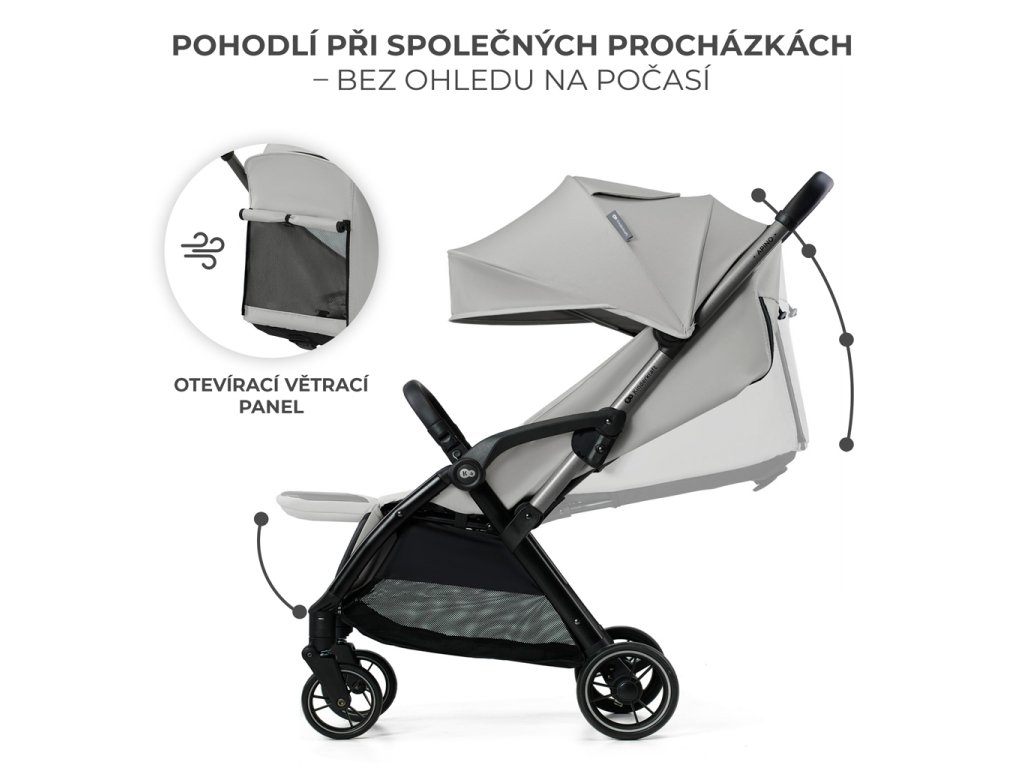 Športový kočík APINO má nastaviteľné operadlo (4 polohy) - od polohy v ľahu až po polohu v sede. Je vybavený veľkou strieškou s vetracím panelom a okienkom pre kontakt rodiča s dieťaťom. Či už sa chystáte na dovolenku alebo idete s celou rodinou do reštaurácie, APINO vám umožní mať svoje dieťatko neustále na očiach: či už na jeseň alebo počas horúceho leta.