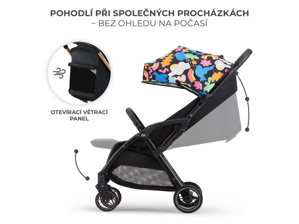 Športový kočík APINO má nastaviteľné operadlo (4 polohy) - od polohy v ľahu až po polohu v sede. Je vybavený veľkou strieškou s vetracím panelom a okienkom pre kontakt rodiča s dieťaťom. Či už sa chystáte na dovolenku alebo idete s celou rodinou do reštaurácie, APINO vám umožní mať svoje dieťatko neustále na očiach: či už na jeseň alebo počas horúceho leta.