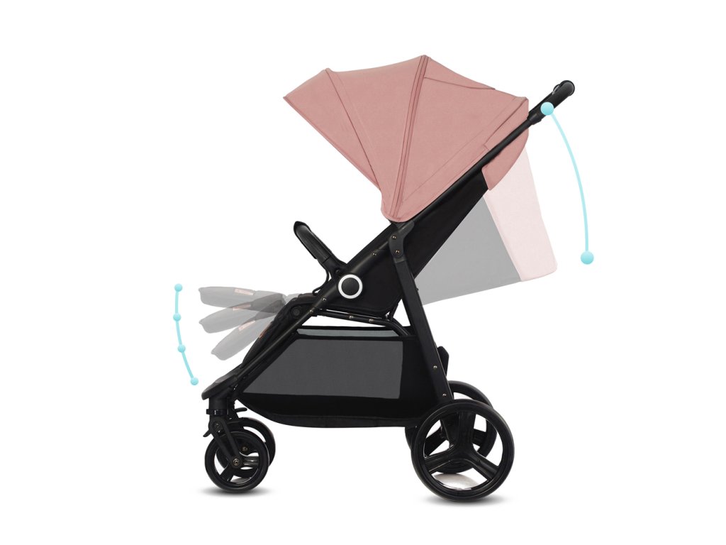 Plynulé nastavenie chrbtovej opierky z polohy v sede do ľahu: dieťa sa počas nastavovania môže nachádzať v kočíku. Spolu s polohovateľnou opierkou nôh vytvára pohodlný priestor pre zdriemnutie na čerstvom vzduchu.