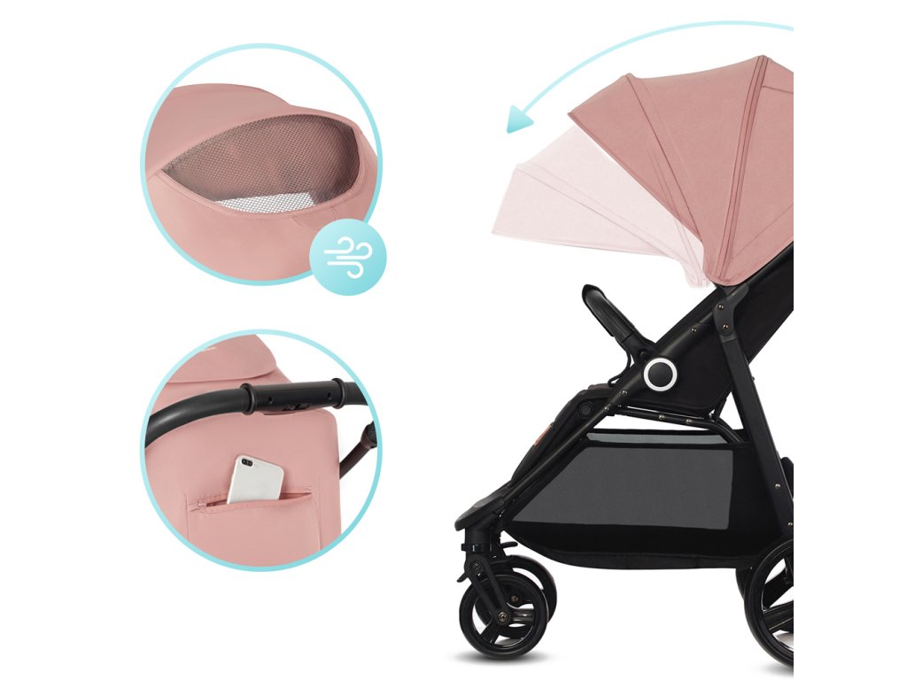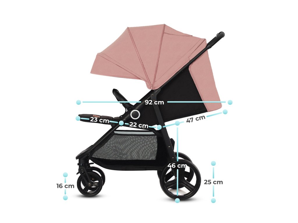 Sedačka je široká a priestranná. Poskytuje pohodlie počas cestovania a v prípade potreby môžete opierku nôh nastaviť tak, aby sa dieťa počas prechádzok cítilo ešte pohodlnejšie.