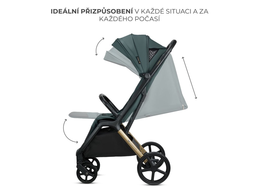 Kočík ponúka nastaviteľné operadlo, dve úrovne nastavenia opierky na nohy a otočné bezpečnostné madlo s možnosťou odpojenia, čo uľahčuje vkladanie a vyberanie dieťaťa z kočíka. Priestranný košík s kapacitou 5 kg pod kočíkom umožňuje pohodlné uloženie nákupov a ďalších potrebných vecí.