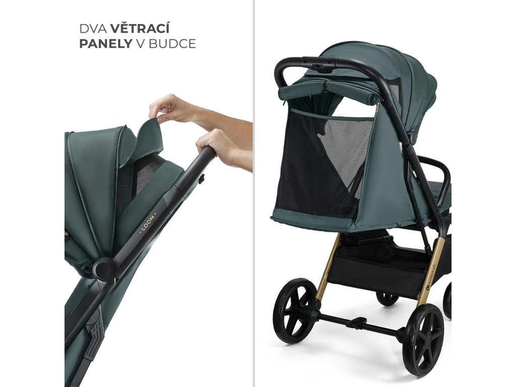 Kočík LOOM má ventilačný panel na zadnej strane, ktorý sa dá otvoriť, keď je operadlo nastavené do ľahu. Okrem toho vhodnú ventiláciu zabezpečuje aj okienko umiestnené na strieške.