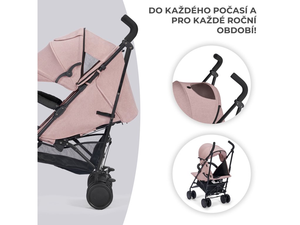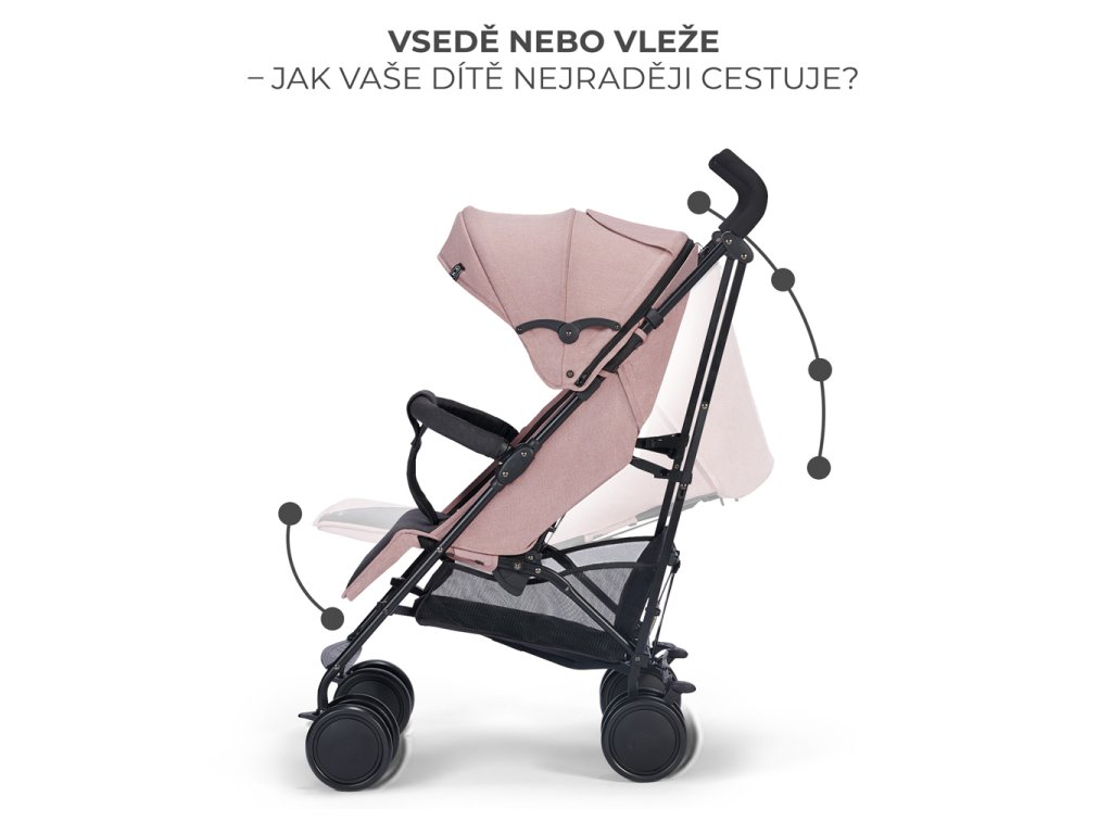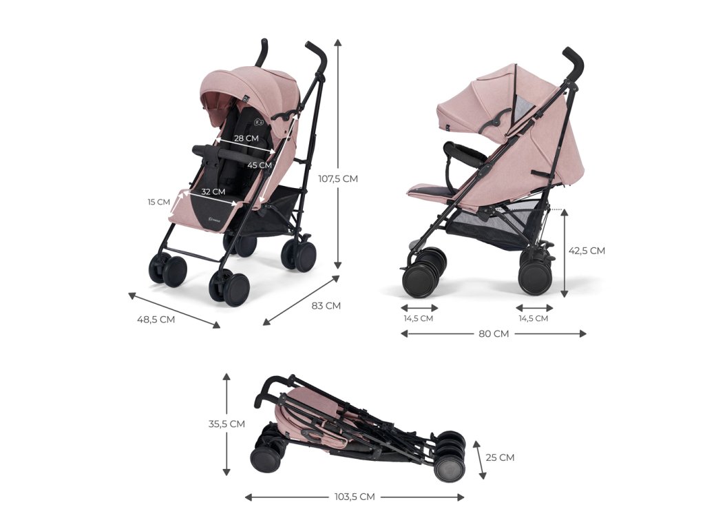 - Jednoducho sa prepravuje – kočík sa dá zložiť do kompaktných rozmerov za niekoľko chvíľ (103,5 cm x 35,5 cm x 25 cm). Zmestí sa do batožinového priestoru auta, a vďaka blokáde proti rozloženiu sa nemusíte obávať, že sa kočík sám rozloží počas cesty.
