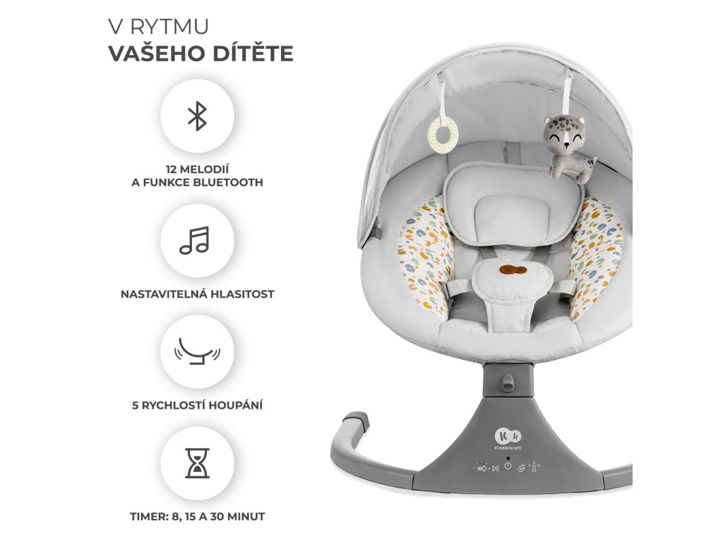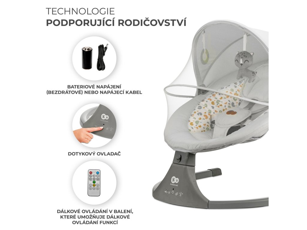 KINDERKRAFT Lehátko pohupujúce s melódiou 2v1 Lumi, do 9 kg, Premium Light Grey