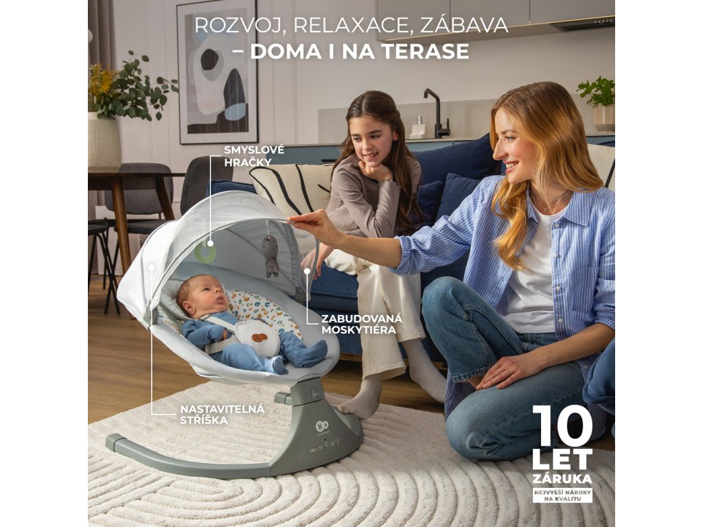 - Motorček pracuje veľmi potichu, intenzita hluku nebude rušiť dieťa pri zaspávaní.