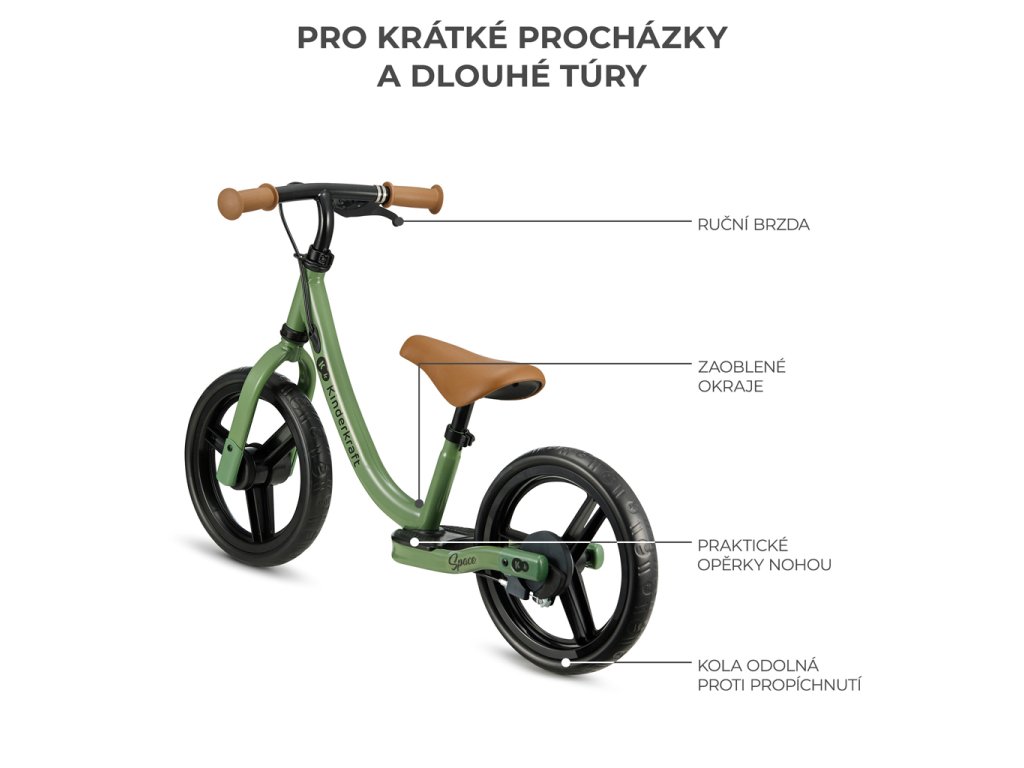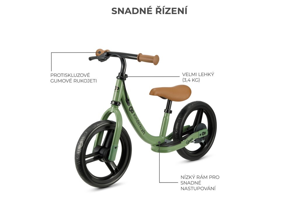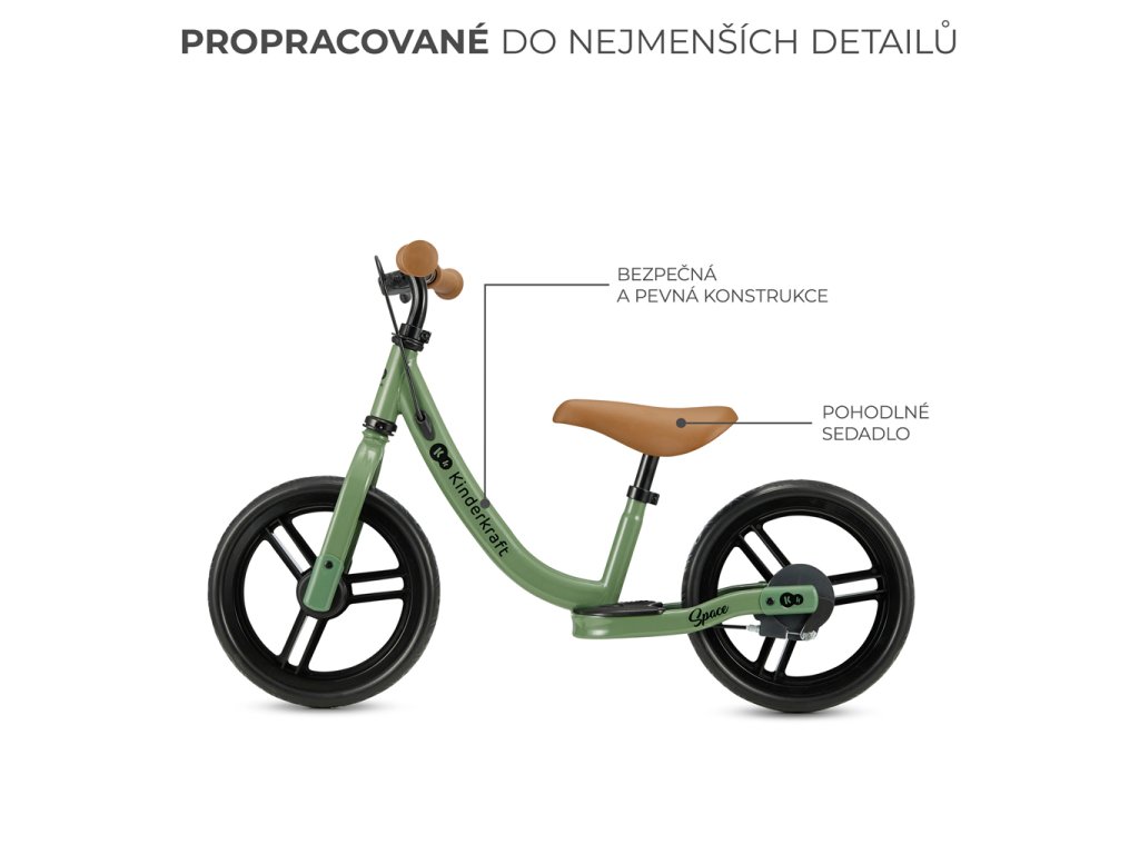 Vyvažovací bicykel Kinderkraft SPACE je výrobok, ktorý u dieťaťa rozvíja schopnosť udržiavať rovnováhu. Vďaka nemu dieťa rozvíja svoje motorické schopnosti a pripravuje sa na to, aby sa naučilo jazdiť na klasickom bicykli. Model SPACE je navyše vybavený ručnou brzdou, ktorá zvyšuje bezpečnosť dieťaťa. Bicykel je tiež veľmi ľahký a veľké kolesá z neprepichnuteľnej peny uľahčujú osvojenie udržania rovnováhy. Namontované opierky nôh navyše umožňujú podopretie nôh pri jazde, čo zabraňuje ich držaniu vo vzduchu.