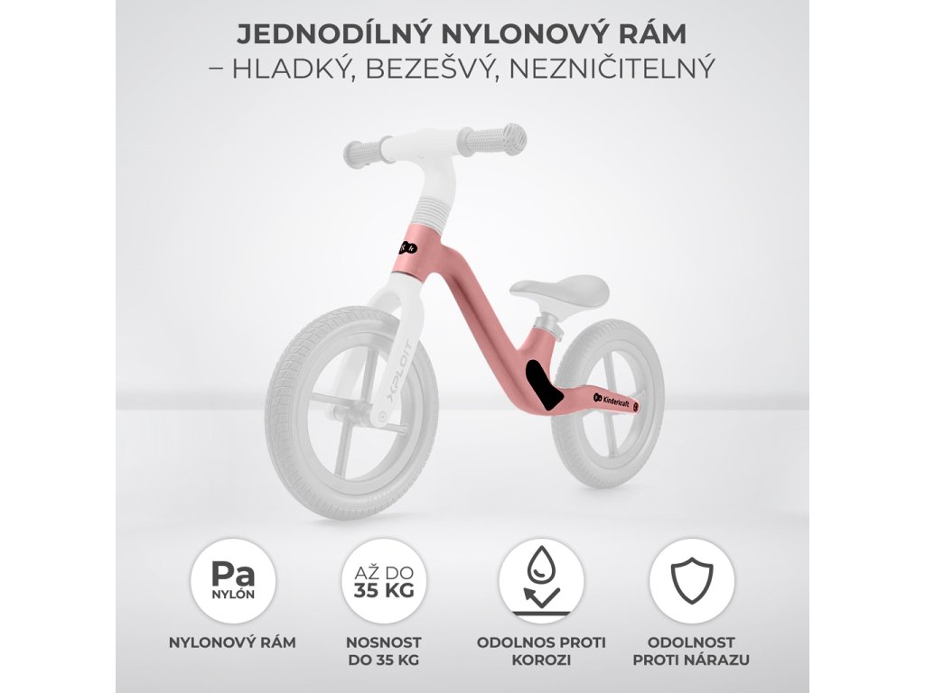 Detské odrážadlo XPLOIT znesie akékoľvek podmienky pri prechádzke. Je vyrobené z ľahkého odolného nylonu: jednodielny rám je odolný voči korózii a nárazu a zároveň má hladkú povrchovú úpravu, takže je bezpečné a pohodlné pre deti. Samotný detský bicykel je ľahký (rám váži necelé 1 kg) a má športový štýl, bude ako stvorený pre každého malého športovca.