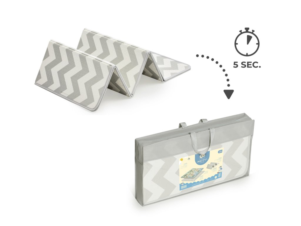 Zloženie podložky MATTY 2 vám zaberie len 5 sekúnd. Nemusíte ju zvinúť do nepohodlnej, veľkej rolky - zloženie podložky a jej príprava na cestu vám zaberie len chvíľu, keď ju vložíte do priloženej tašky.