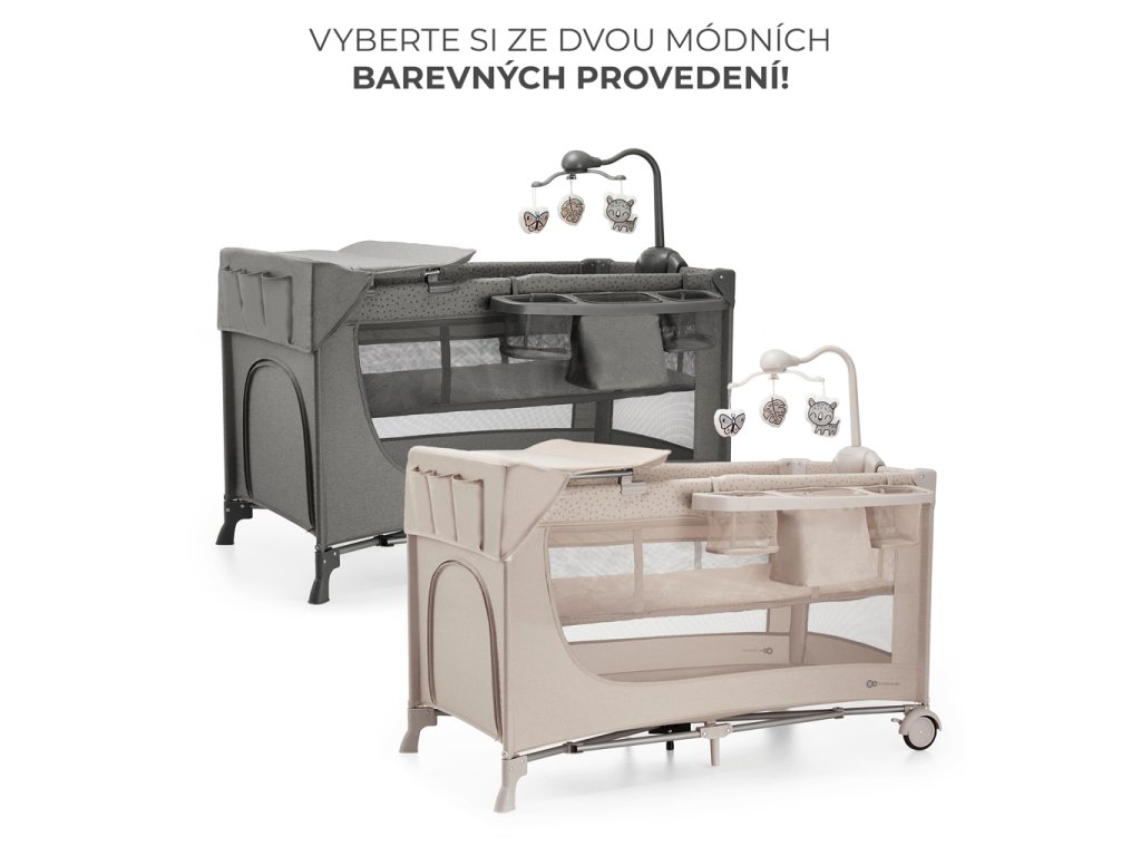 KINDERKRAFT Postieľka cestovná Joy 2 s doplnkami Dark grey