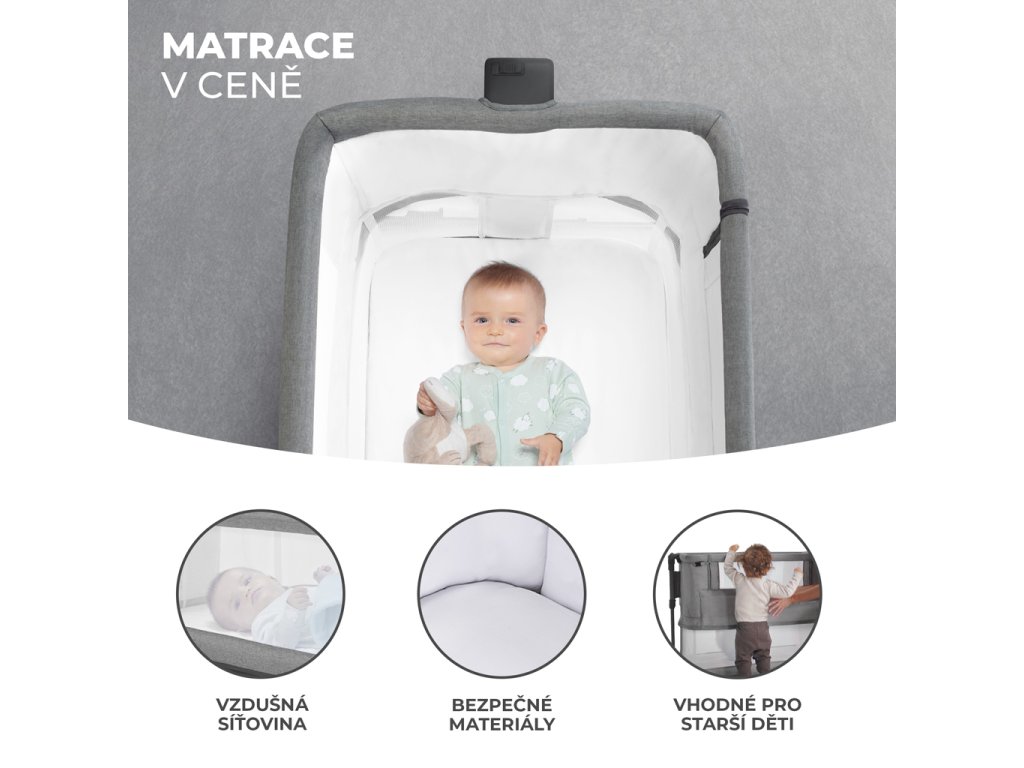 - Vo funkcii prístelky sa na sťahovacej bočnici nachádza sieťovina. Umožňuje mať dieťa vždy na očiach.