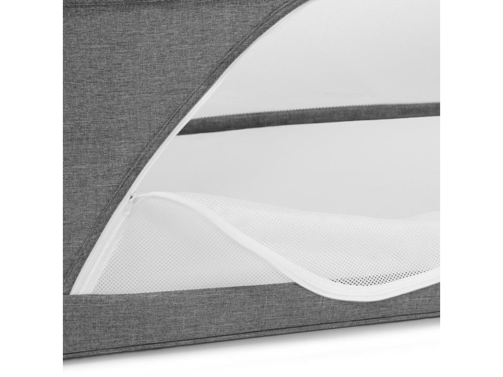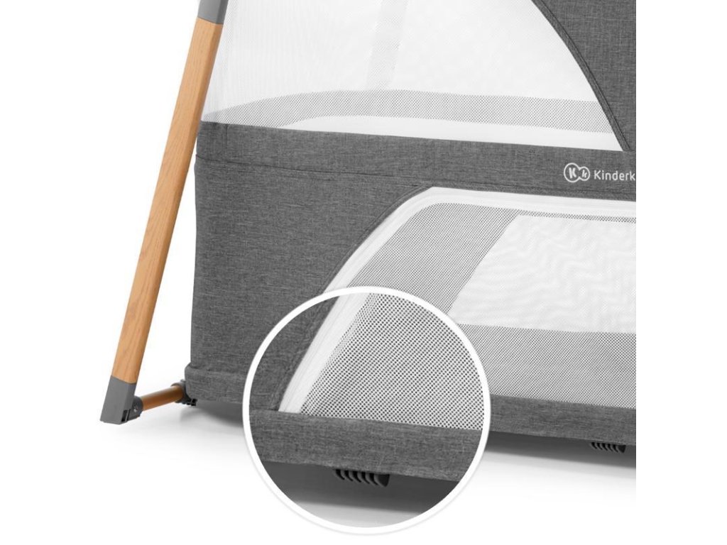 - detská postieľka má špeciálny materiál, ktorý zabezpečuje dobré vetranie a umožňuje dieťaťu sledovať svet