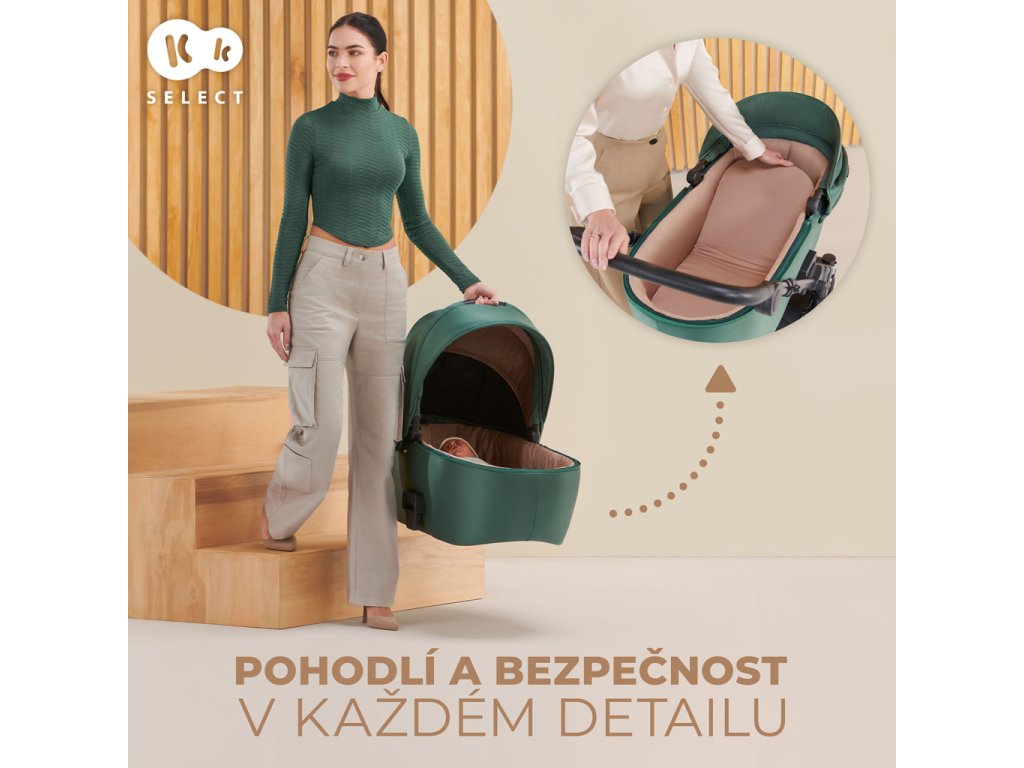 KINDERKRAFT SELECT Kočík kombinovaný 3v1 Prime 2 Shadow Grey, Premium + Fusak Jibot Charcoal Grey