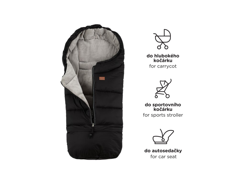 - 3v1 – odopnutím nánožníka zmeníte veľkosť fusaku na menší, vhodný do hlbokej vaničky alebo autosedačky