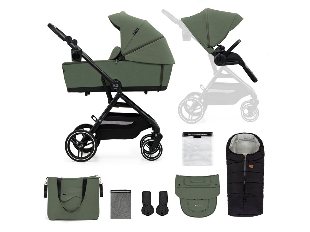 KINDERKRAFT SELECT Kočík kombinovaný Yoxi 2v1 Mystic Green + Fusak 3v1 Jibot Horizontal Ink Black