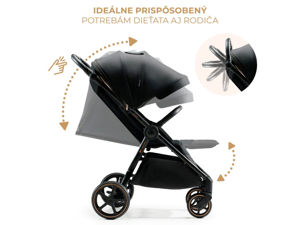 Tento športový kočík bol prispôsobený potrebám detí a rodičov. 3-stupňové nastavenie opierky nôh spolu s plynulým a tichým nastavením chrbtovej opierky vám umožní nastaviť kočík tak, aby sa vaše dieťatko cítilo pohodlne - či už si chce zdriemnuť, alebo radšej pozorovať okolie. A na rodičov čaká 3-stupňové nastavenie rukoväte: rýchlo a jednoducho si ho prispôsobíte vlastnej výške.