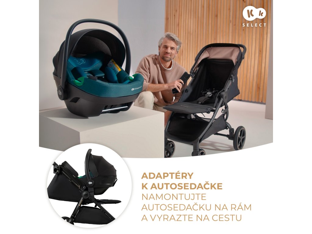 Rám kočíka je navrhnutý tak, aby sa doň zmestila autosedačka s hmotnosťou 0-13 kg. Ak musíte ísť na chvíľu von a vaše dieťa v aute zaspí - jednoducho pripevnite autosedačku na rám kočíka. Adaptéry sú k dispozícii na predaj samostatne.