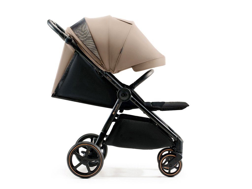 MITZY sa dá v okamihu zložiť jednou rukou do kompaktnej veľkosti a vziať so sebou na cesty. Poradí si aj v daždi a úpaloch: veľká nepremokavá strieška s UPF50+ chráni pred dažďom, vetrom a UV žiarením. Strieška má vetrací panel a okienko na kontakt s dieťaťom, a keď rozložíte operadlo do polohy ležmo, môžete látku pripevniť tak, aby malo vaše dieťa počas spánku k dispozícii dostatok vzduchu. Kočík sa predáva so zaťahovacou sieťkou proti hmyzu, ktorú možno schovať do opierky nôh, a držiakom na pohár. MITZY má všetko, čo potrebujete na prechádzky a dovolenku.