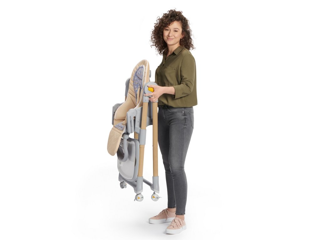 Spolu s LASTREE bude trávenie času s dieťaťom oveľa jednoduchšie – budete mať dieťa pri sebe vždy a všade. Umožňujú to aj tiché kolieska, ktorými sú ukončené nožičky stoličky-ležadla. Jednoducho premiestnite stoličku z jednej miestnosti do druhej! A vďaka dodatočnému košu na drobnosti rýchlo vytiahnete vlhčený obrúsuk a utriete tváričku dieťaťa.