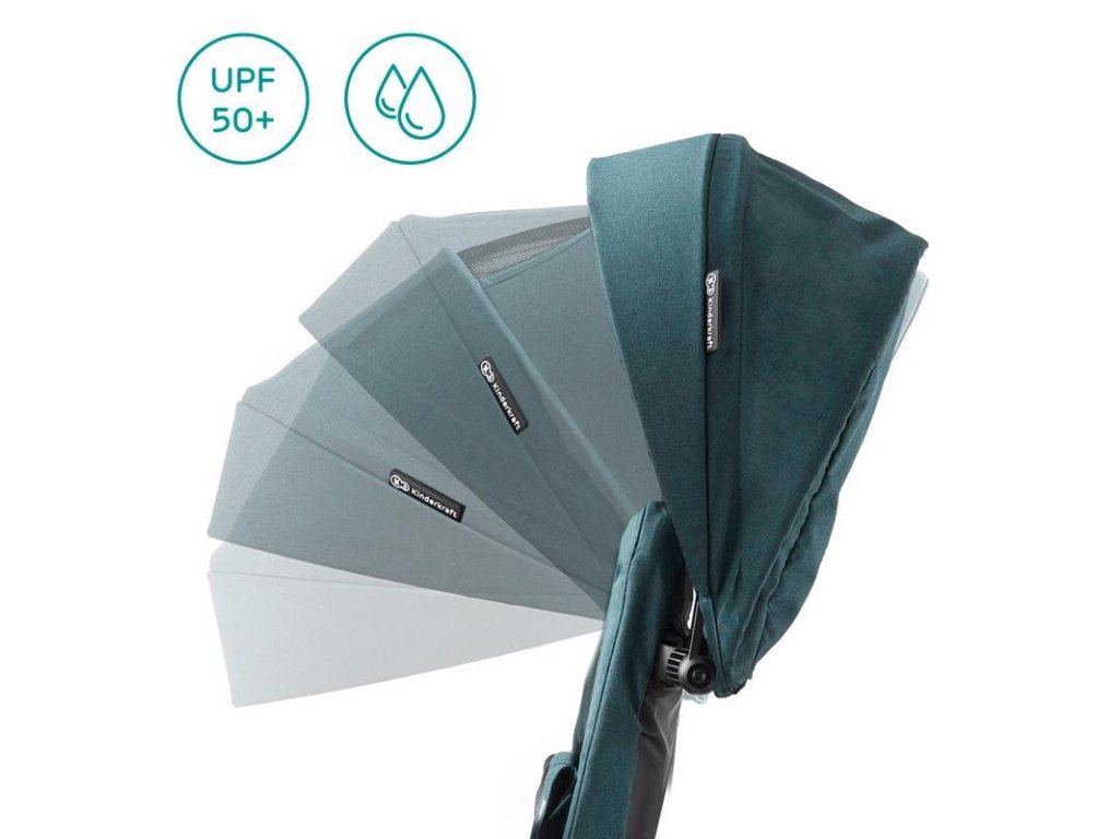 - nastaviteľná strieška vyrobená z nepremokavého materiálu s filtrom UPF 50+