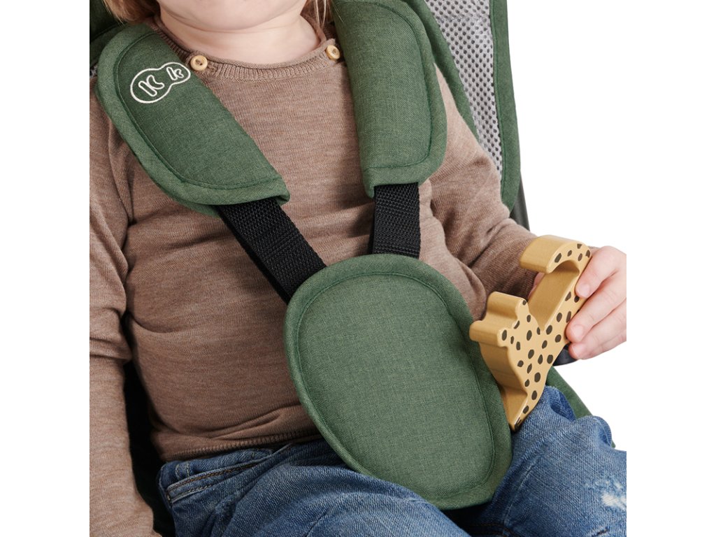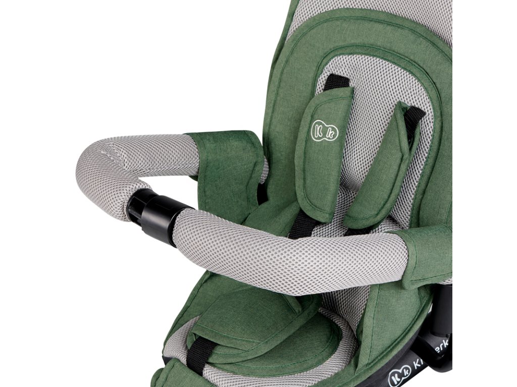 - odnímateľné mäkké madlo umožňuje ľahké vloženie a vybratie dieťaťa. Má centrálne umiestnené tlačidlo, vďaka ktorému ho rodič otvorí jednou rukou.