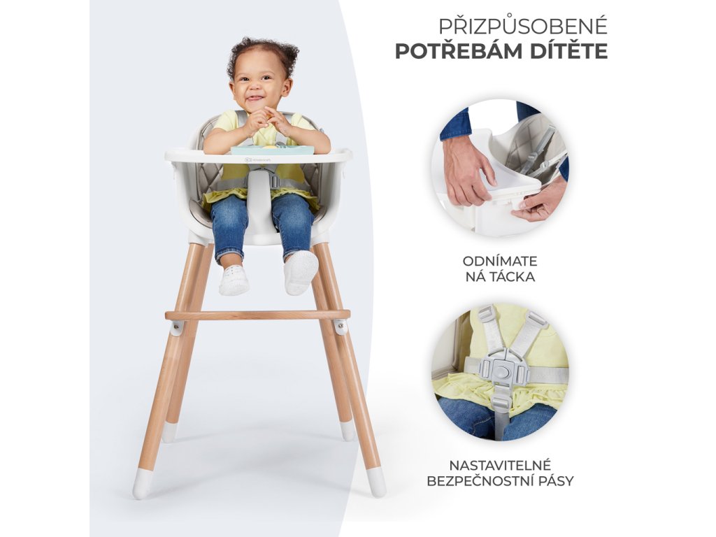 - Odnímateľná tácka slúži aj ako zábradlie, ktoré ďalej chráni batoľa.