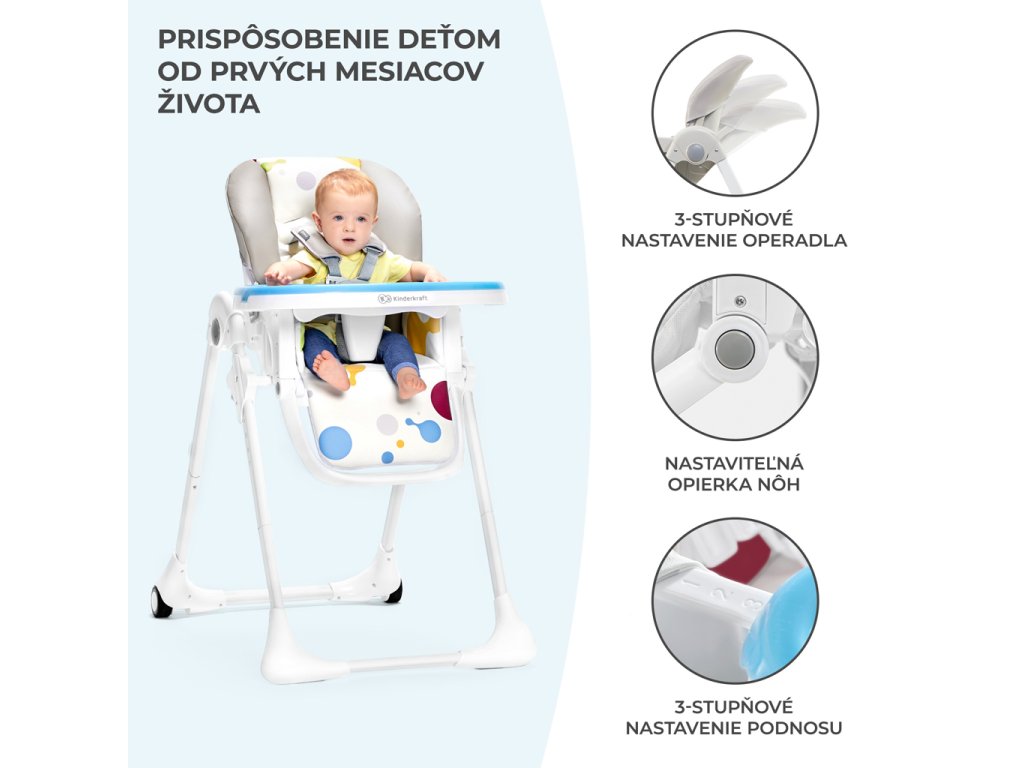 Jedálenská stolička vhodná pre deti od 6 mesiacov do 3 rokov.