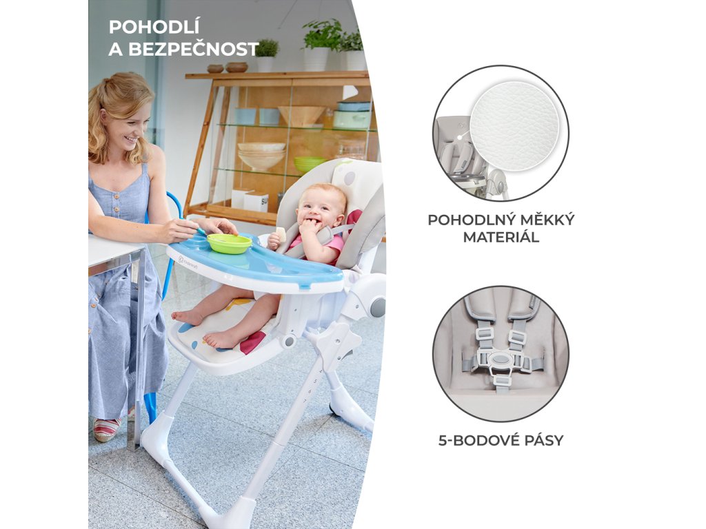 - stabilná a bezpečná vysoká stolička na kŕmenie