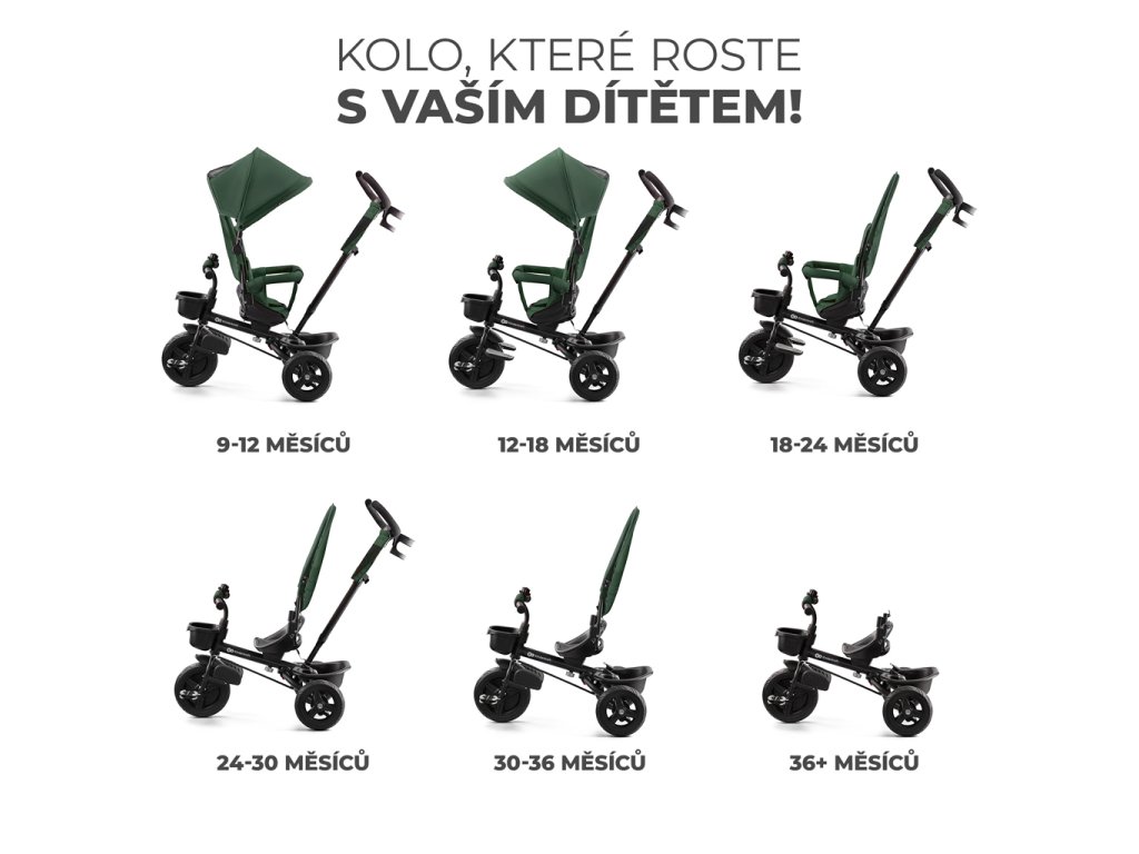 Sedadlo môžete otáčať dopredu alebo dozadu. Vďaka tomu je detský bicykel vhodný pre deti približne od 9 mesiacov. Bude neoceniteľným spoločníkom na každej prechádzke, a keď vaše dieťatko vyrastie, môžete AVEO ľahko premeniť na samostatnú trojkolku.