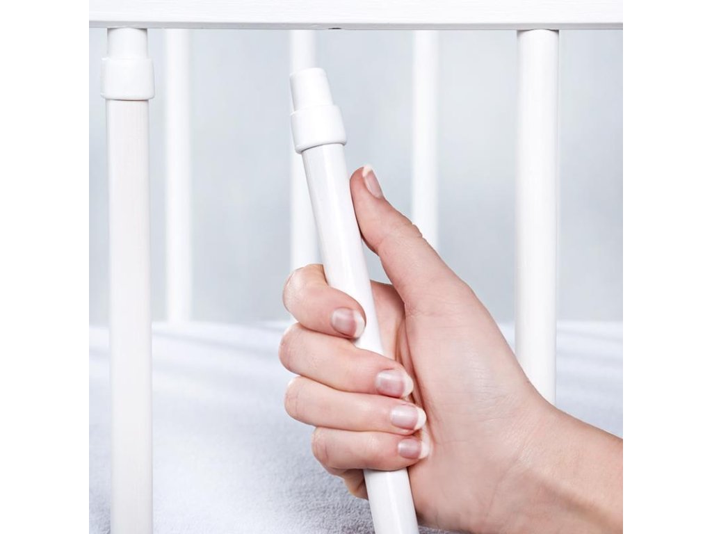 Stabilná detská postieľka s aplikáciou srdiečka vyrobená z materiálov: eco + MDF + borovicové drevo. Na kratšom boku postieľky je umiestnený znak informujúci o maximálnej hrúbke matraca, ktorý je možné použiť v najvyššej polohe lôžkovej plochy postieľky.