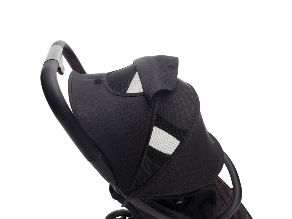 Predĺžiteľná strieška s ventilačnými okienkami chráni dieťa pred slnkom aj