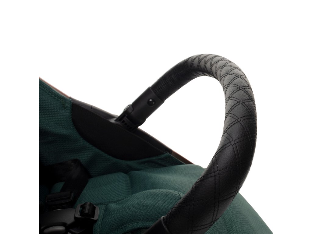 Prešívanú hrazdu kočíka je možné odklopiť pre ľahšie usadenie dieťaťa.