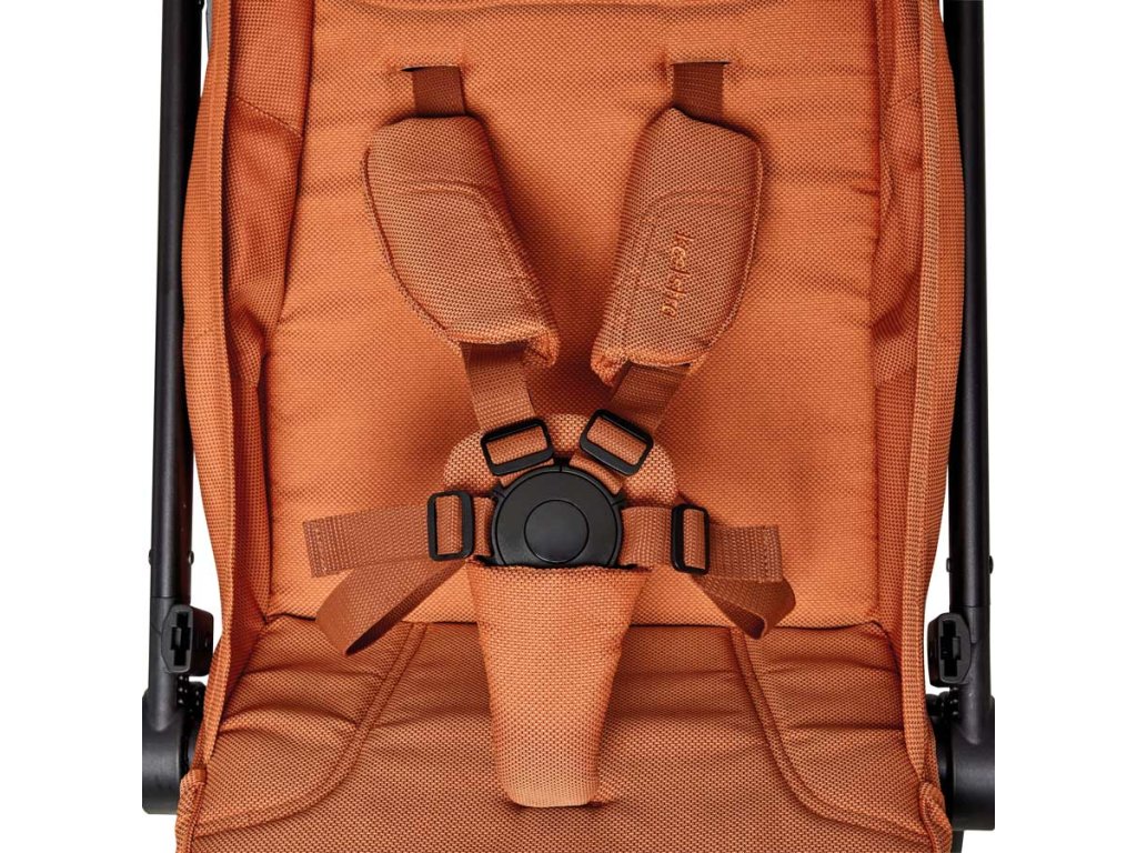 Bezpečnosť: Vaše dieťa zostane v kočíku Koelstra Re-act Buggy bezpečne usadené vďaka 5-bodovému bezpečnostnému pásu. Pás má mäkké podušky, ktoré chránia pokožku. Dieťa sa pri jazde chytí bezpečnostného držadla tyče a objavuje svet okolo seba.