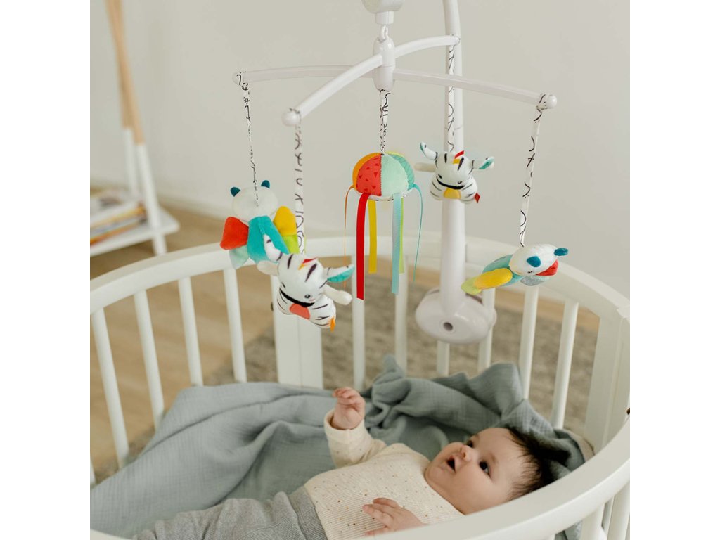 Zvieratká z kolekcie DoBabyDoo sú roztomilé a deti si ich hneď zamilujú. Budú ich fascinovane pozorovať, keď sa v rytme Mozartovej uspávanky točia nad nimi.